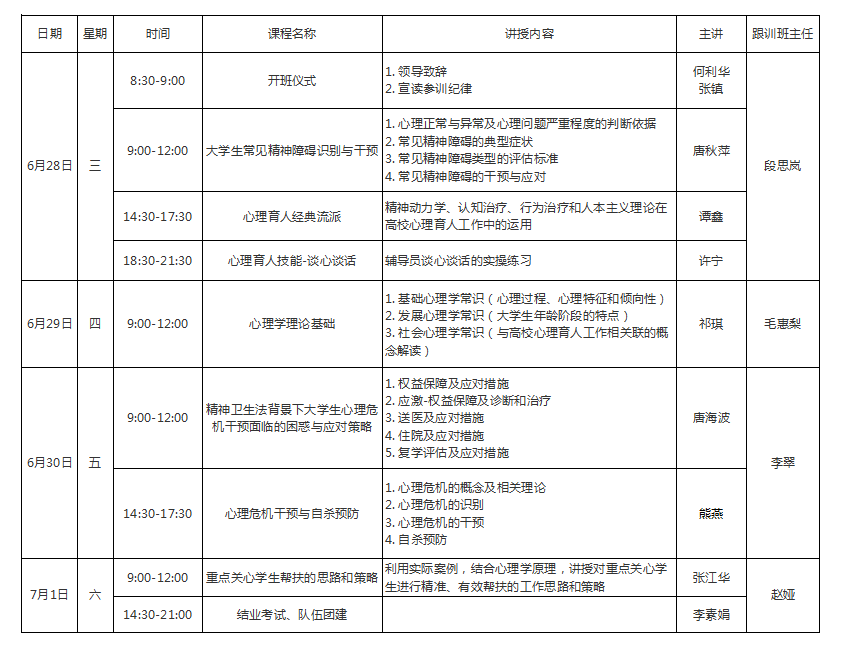 3.培训期间无特殊理由不得请假;确需请假的,需报学生工作处张镇处长审批,如批准同意,请学员向跟训班主任报备。