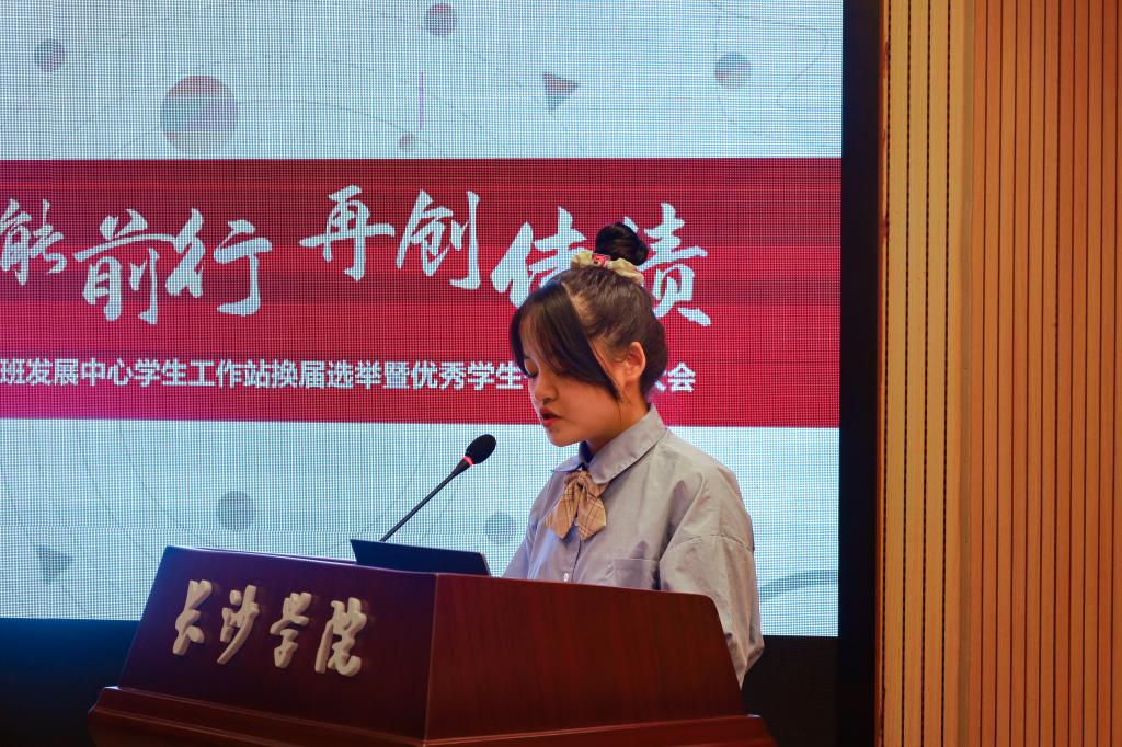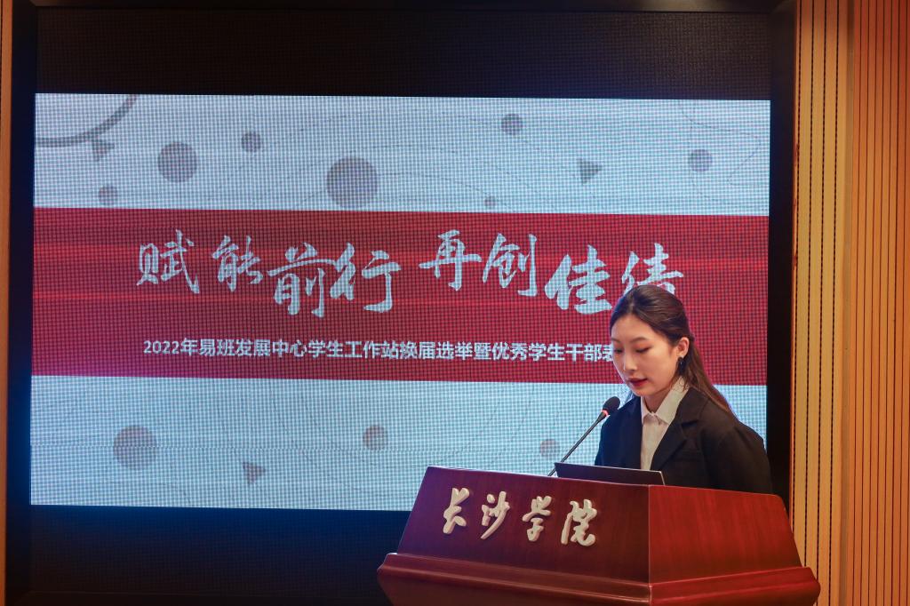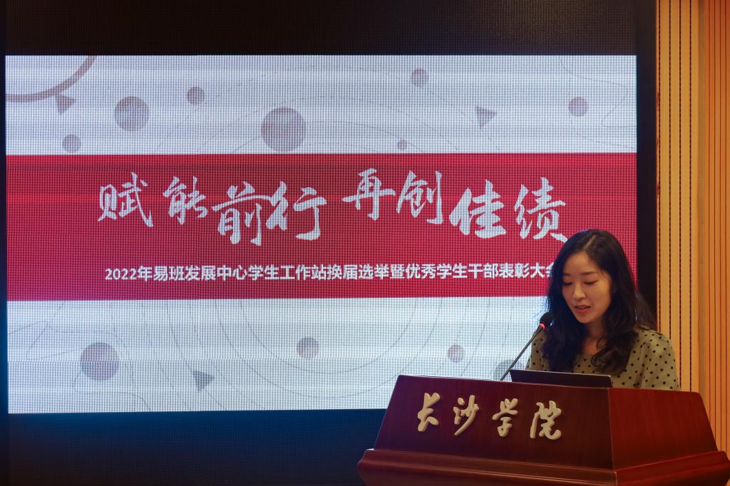 6月18日下午,长沙学院2022年易班发展中心学生工作站换届选举暨优秀学生干部表彰大会于图书馆一楼报告厅举行。党委学生工作部副部长李素娟、学生教育管理科科长谭寅寅出席本次会议,第二届易班学生工作站全体成员与换届竞聘者参加会议。本次会议由易班发展中心学生工作站副站长闫安东主持。