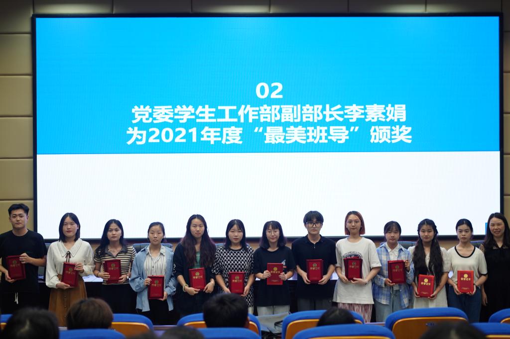 在第二场新生班导培训暨优秀班导经验分享会上,学工部对2021年度“最美班导”进行了表彰,李素娟为各学院获奖代表颁发荣誉证书。“身为班导,我们应不负学校重托、不负学弟学妹信任、不负青春成长宏愿。”马栏山学院谭嘉俊、机电学院吴嘉丽作为2021级优秀班导发言,分享了工作要点、经验与自身感悟。心理健康教育中心毛惠梨老师结合案例,针对新生心理问题识别与处理为班导提供指导,提醒班导应多关注关心新生,及时反馈报告问题。班导培训最后,学生教育管理科科长谭寅寅再次强调了班导工作的重要性,并提出了具体工作要求。