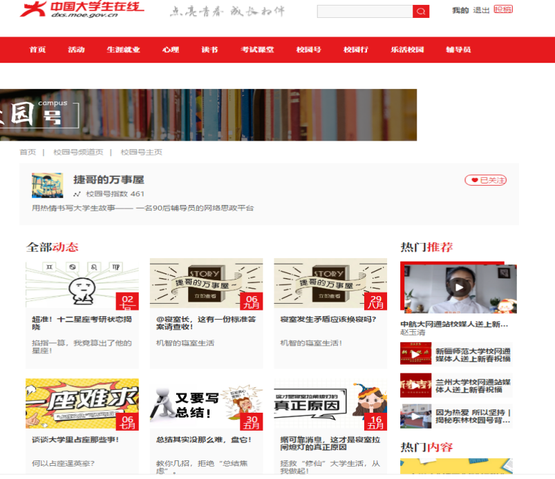 多次在“教育部中国大学生在线”专栏号热度榜排名第1