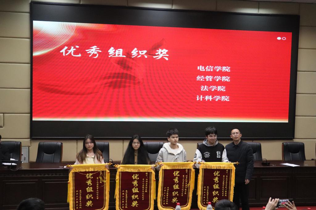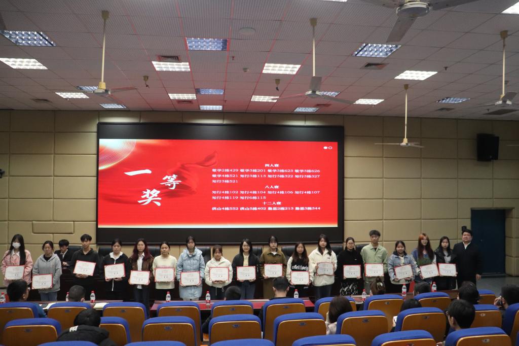 李晗、叶佳、喻磊分别为“灵秀之屋”寝室装扮、“青春如此甚好”特色寝室、“因为彼此,所以更好”共叙寝室故事等项目的获奖集体颁奖。胡小毅为获得“优秀组织奖”和“优秀指导老师奖”的集体和个人颁奖。