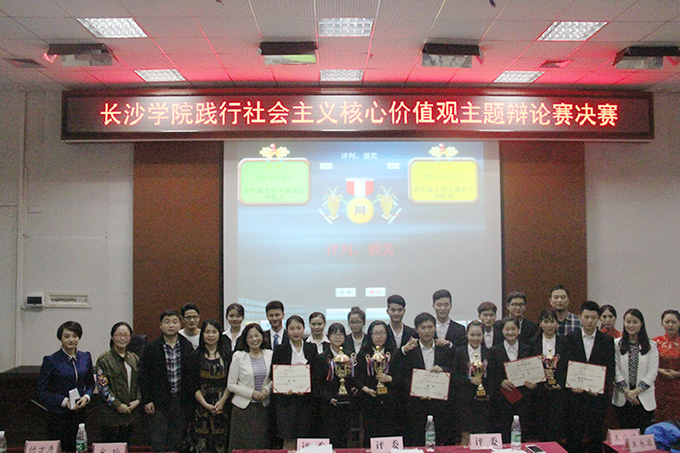 本次长沙学院“践行社会主义核心价值观主题辩论赛”历时两个月,吸引了全校11个系部以及校学联和广大校园辩论爱好者参赛。比赛紧扣“践行社会主义核心价值观”,论大学生就业选择、青年同学如何成才等问题,在校园内掀起了一阵辩论热潮。