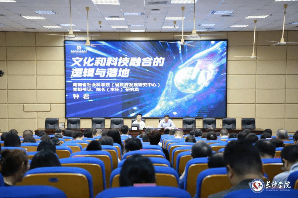4月9日下午,学校首期文化和科技融合大讲堂在致远楼学术报告厅举行,湖南省社会科学院(省政府发展研究中心)党组书记、院长(主任)钟君应邀作“文化与科技融合的逻辑与落地”专题辅导报告。校长陈赤平出席并主持活动。