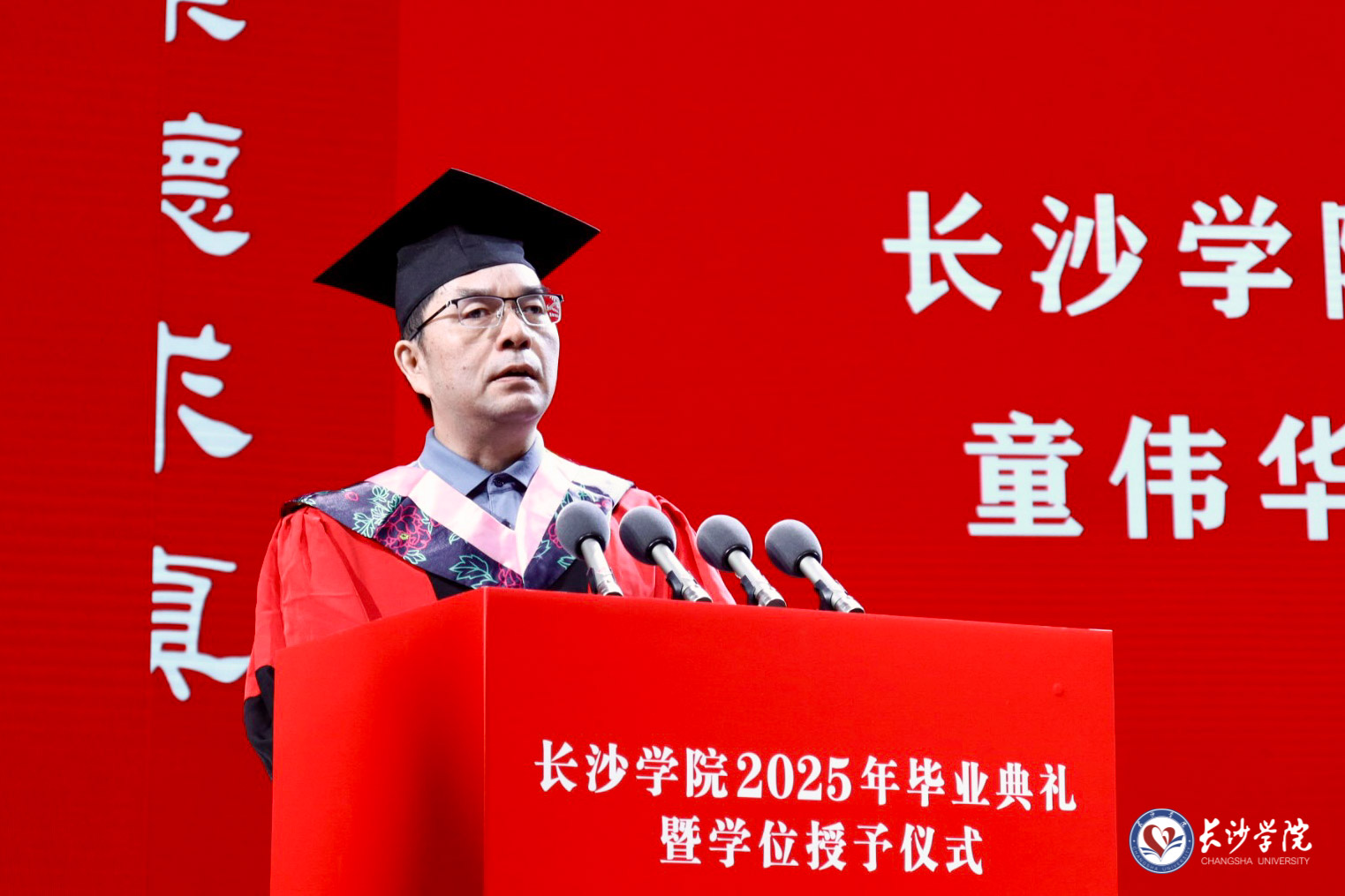 6月16日,长沙学院2025年毕业典礼暨学位授予仪式在学生活动中心举行。3952名长大学子圆满完成学业,即将开启人生新航程。全体在家校领导,学位授予导师,各职能处室、教辅部门主要负责人,各二级学院党政班子成员,毕业班辅导员、班主任,以及2025届毕业生代表共同见证了这一重要时刻。典礼由党委书记杨小云主持。