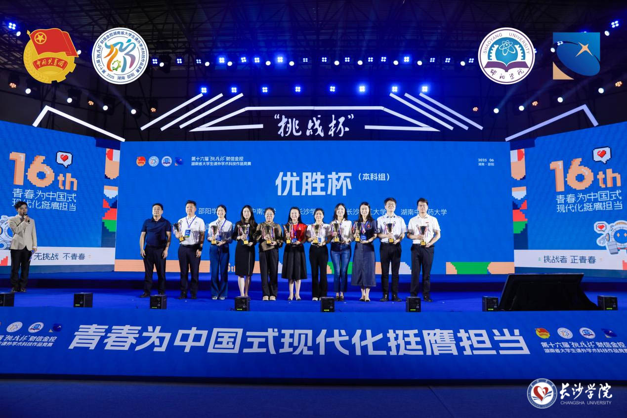 6月10日至13日,由共青团湖南省委、湖南省教育厅、湖南省科学技术协会主办的第十六届“挑战杯”湖南省大学生课外学术科技作品竞赛在邵阳学院举行。全省98所高校的417个项目同台竞技,最终我校参赛团队获特等奖2项、一等奖8项、二等奖3项、三等奖6项,团体分排名位列全省第四,实现了学校在该项赛事中的新突破。同时,学校蝉联“优胜杯”荣誉称号,彰显了长大学子在学术科技领域的创新实力与团队协作精神。
