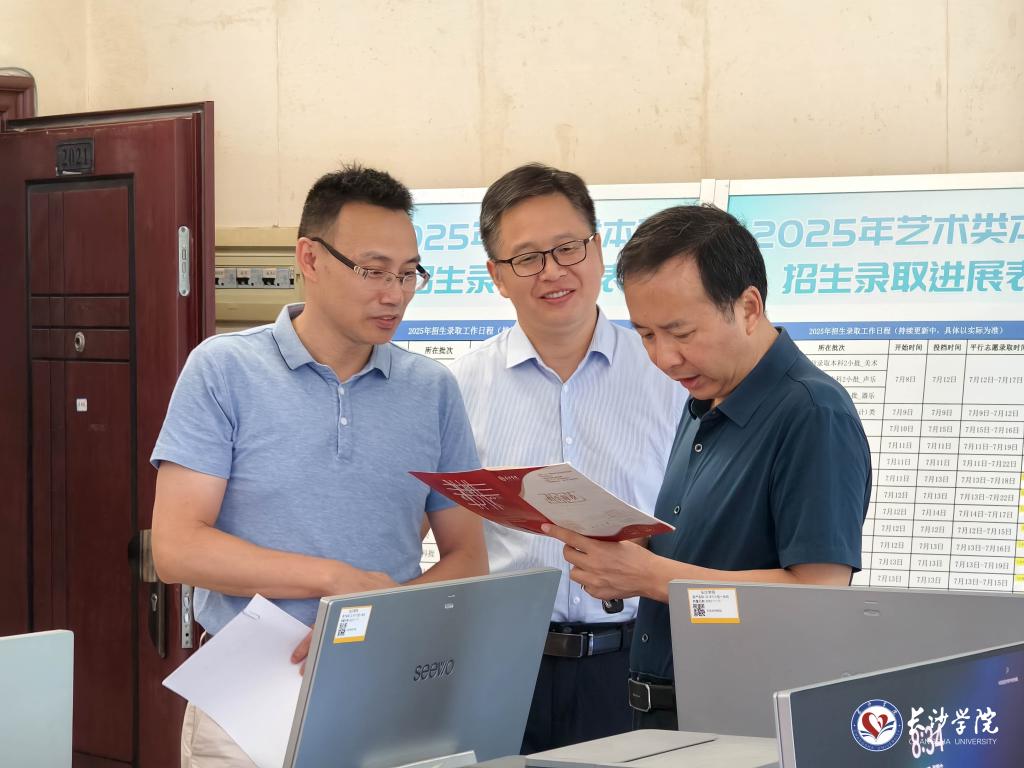 7月19日,校长陈赤平,党委委员、副校长张世英深入我校2025年普通本科招生录取现场,检查招生录取情况,并看望慰问一线招生工作人员。