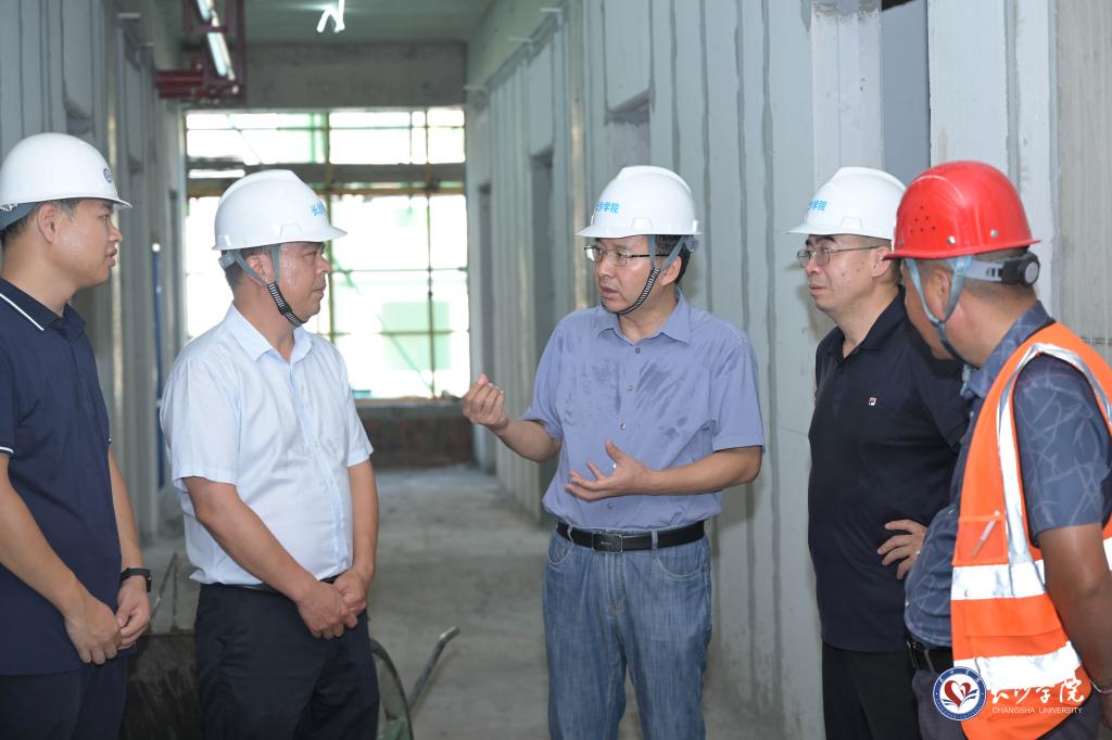 8月12日,校长陈赤平带队深入学校东区新建学生宿舍工地和天健体育场、音乐学院、永康体育馆等暑期维修改造现场,实地调度工程推进情况,看望慰问坚守岗位的一线施工人员。党委委员、副校长何利华陪同。