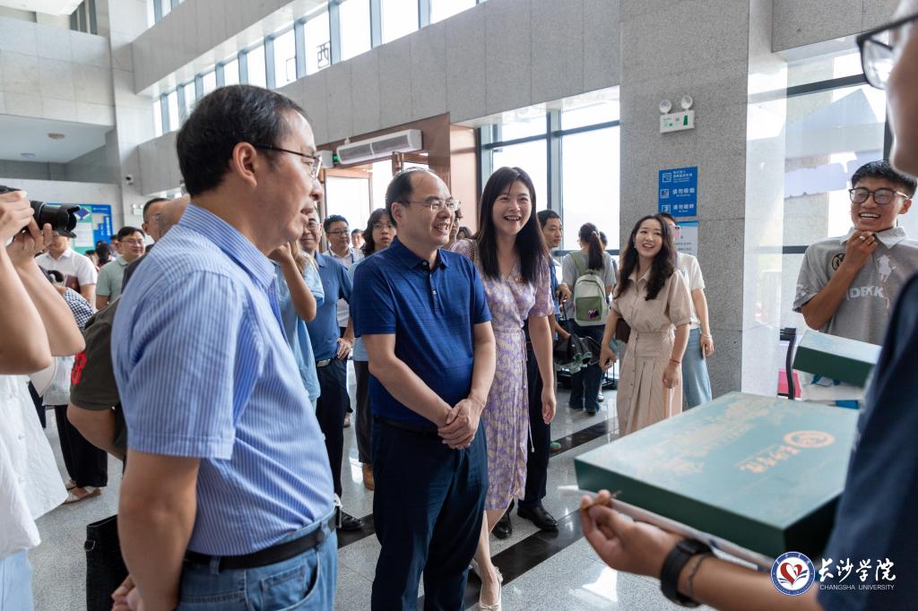 学校领导也前往各学院报到点,慰问参加迎新工作的师生员工,向前来报到的新生及家长送上问候和祝福。在学生宿舍,党委书记杨小云、校长陈赤平与刚安顿好的新生及其家长亲切交谈,勉励各位新生厚植家国情怀、筑牢思想根基、淬炼意志品质,以崭新的精神面貌进入大学,在不懈奋斗中绽放青春光彩。