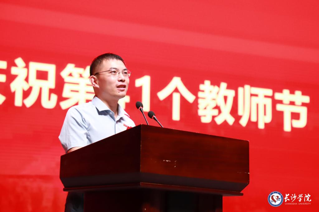 9月10日下午,我校在学生活动中心举行“以教育家精神铸魂强师,谱写教育强国建设华章”庆祝第41个教师节暨表彰大会。党委书记杨小云出席大会并讲话,校长陈赤平主持大会,全体校领导,全体科级以上干部,2025年度师德标兵、2024-2025学年获表彰奖励教师、荣休教师代表、新进教师,教研室、实验室主任以及在职教职工、学生代表等600余人齐聚一堂,共同庆祝第41个教师节的到来。