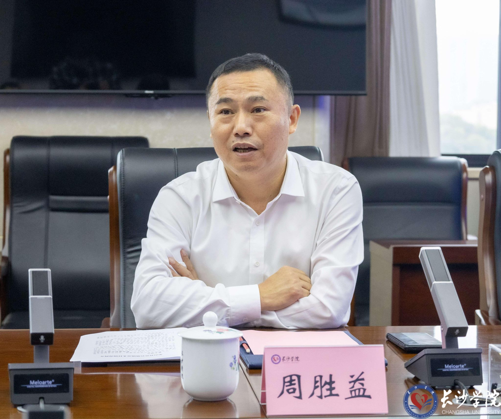 陈赤平对周胜益一行表示欢迎,并简要介绍了学校办学情况。他表示,服务乡村振兴是高校义不容辞的社会责任,学校作为龙山县茨岩塘镇凉水村帮扶后盾单位,愿意成为龙山农副产品推广销售的积极参与者、推动者。