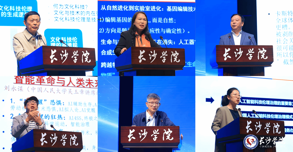 本次大会设一个主会场、三个分会场。主会场上,中国人民大学曹刚教授、复旦大学王国豫教授、上海大学孙伟平教授、中国人民大学刘永谋教授、上海大学肖峰教授、中国信息通信研究院副研究员毕春丽分别作了题为《文化科技伦理问题探究》《科技伦理的未来指向和治理路径》《论人机劳动权竞争的伦理后果》《智能革命与人类未来》《卓越的AI与安全的AI何以统一》《“人工智能+”科技伦理治理》的主旨报告;分会场分别由湖南师范大学、长沙学院、湘潭大学主办,来自各大高校的专家学者围绕文化科技融合数据伦理及其治理、“人工智能+”与智能向善理论、科技伦理教育与人才培养等主题展开了广泛交流和深入讨论,有力推动了文化科技伦理治理领域的学术交流与实践探索。