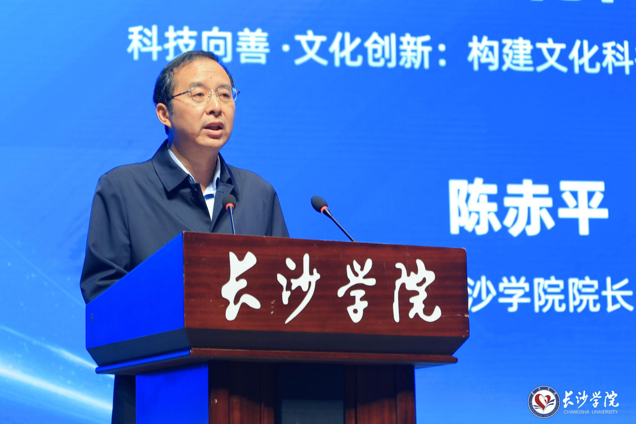 陈赤平在致辞中对各位领导专家的到来表示欢迎,并简要介绍了学校积极打造文化科技融合办学特色的工作成效。他指出,当前文化和科技深度融合,虽催生了新业态,但也引发了文化科技伦理风险,在此背景下举办此次大会意义深远。长沙学院期待与各位专家一道,深入探寻文化科技伦理风险的内在逻辑与影响机制,致力于正确处理文化与科技的伦理关系、科学应对文化科技伦理挑战,共同探索构建灵敏、科学、高效的文化科技伦理预警机制,为文化科技事业长远健康发展保驾护航。