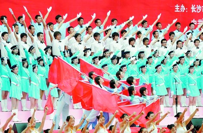 "为13首红歌做互动表演,我们编排了近五十个动作。刚开始训练时,要与每个合唱团配合得丝丝入扣,真的很难。"在满场的国旗和呼声中,长沙商贸旅游职业技术学院的女生王芬按捺不住激动,"可是很值得,你看,大家都在为我们鼓掌,太感动了。"